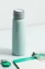 בקבוק נירוסטה מט הכולל ידית לולאה לנסיעה קלה ושמירה על משקאות חמים או קרים.